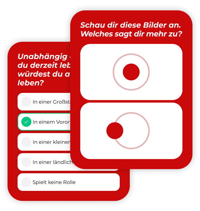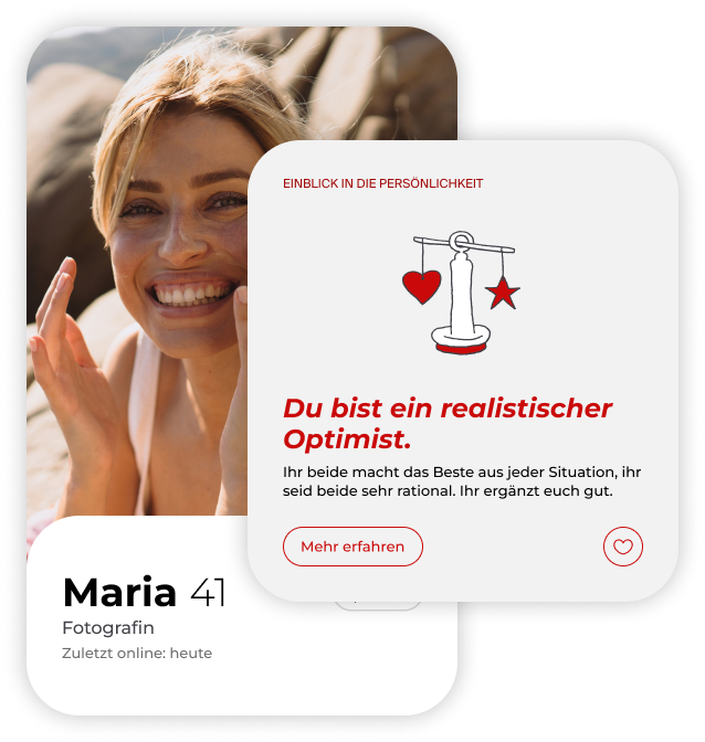 Du willst nicht irgendwen daten, der vielleicht ein schönes Profilfoto hat und einen soliden ersten Eindruck macht, sondern den Menschen, der dich umhaut. Und um diesen Menschen zu finden, hilft dir unser Matching, das Parship-Prinzip®. Und so funktioniert‘s: